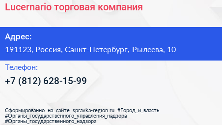 Lucernario, торговая компания по адресу 191123, Россия, Санкт-Петербург, Рылеева, 10 в дальнейшем Организация, размещена в следующих категориях: