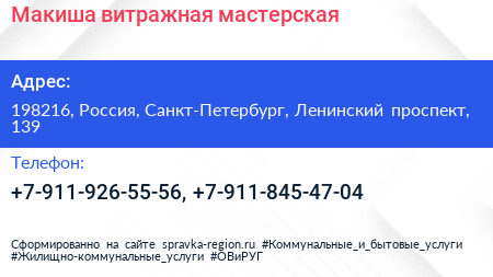Макиша, витражная мастерская по адресу 198216, Россия, Санкт-Петербург, Ленинский проспект, 139 в дальнейшем Организация, размещена в следующих категориях: