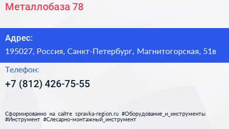 Металлобаза 78 по адресу 195027, Россия, Санкт-Петербург, Магнитогорская, 51в в дальнейшем Организация, размещена в следующих категориях: