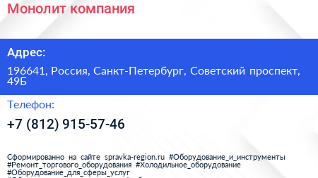 Монолит, компания по адресу 196641, Россия, Санкт-Петербург, Советский проспект, 49Б в дальнейшем Организация, размещена в следующих категориях:
