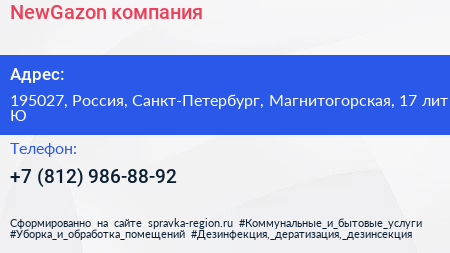 NewGazon, компания по адресу 195027, Россия, Санкт-Петербург, Магнитогорская, 17 лит Ю в дальнейшем Организация, размещена в следующих категориях: