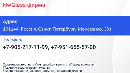 NwGlass, фирма по адресу 191144, Россия, Санкт-Петербург, Моисеенко, 39а в дальнейшем Организация, размещена в следующих категориях: