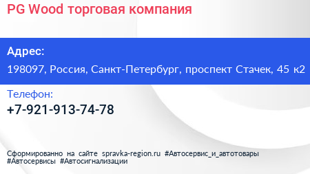 PG Wood, торговая компания по адресу 198097, Россия, Санкт-Петербург, проспект Стачек, 45 к2 в дальнейшем Организация, размещена в следующих категориях: