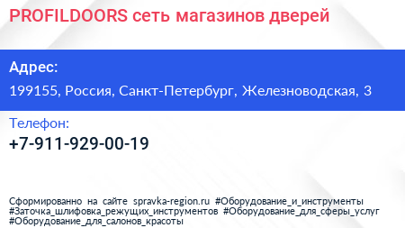PROFILDOORS, сеть магазинов дверей по адресу 199155, Россия, Санкт-Петербург, Железноводская, 3 в дальнейшем Организация, размещена в следующих категориях: