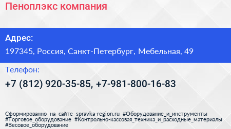 Пеноплэкс, компания по адресу 197345, Россия, Санкт-Петербург, Мебельная, 49 в дальнейшем Организация, размещена в следующих категориях: