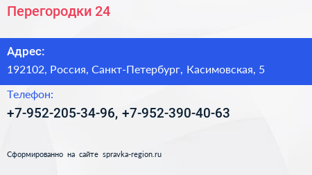 Перегородки-24 по адресу 192102, Россия, Санкт-Петербург, Касимовская, 5 в дальнейшем Организация, размещена в следующих категориях: