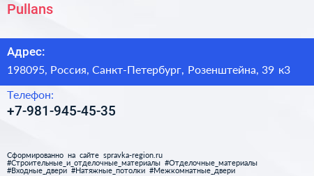 Pullans по адресу 198095, Россия, Санкт-Петербург, Розенштейна, 39 к3 в дальнейшем Организация, размещена в следующих категориях: