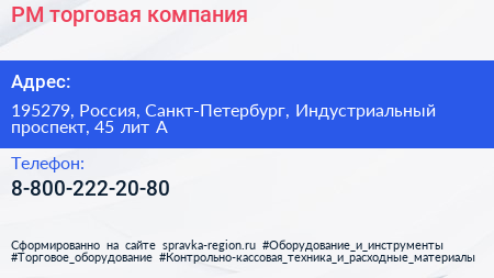 РМ, торговая компания по адресу 195279, Россия, Санкт-Петербург, Индустриальный проспект, 45 лит А в дальнейшем Организация, размещена в следующих категориях: