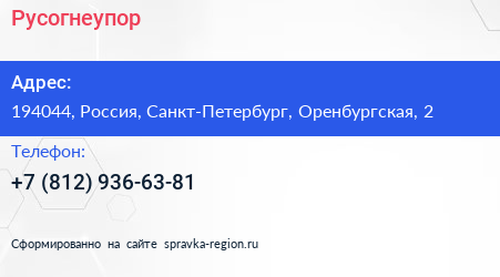 Русогнеупор по адресу 194044, Россия, Санкт-Петербург, Оренбургская, 2 в дальнейшем Организация, размещена в следующих категориях:
