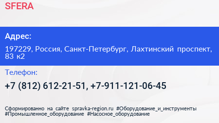 SFERA по адресу 197229, Россия, Санкт-Петербург, Лахтинский проспект, 83 к2 в дальнейшем Организация, размещена в следующих категориях: