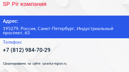 SP Pir, компания по адресу 195279, Россия, Санкт-Петербург, Индустриальный проспект, 63 в дальнейшем Организация, размещена в следующих категориях: