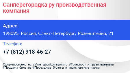Санперегородка.ру, производственная компания по адресу 198095, Россия, Санкт-Петербург, Розенштейна, 21 в дальнейшем Организация, размещена в следующих категориях: