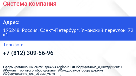 Система, компания по адресу 195248, Россия, Санкт-Петербург, Уманский переулок, 72 к1 в дальнейшем Организация, размещена в следующих категориях: