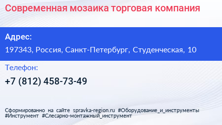 Современная мозаика, торговая компания по адресу 197343, Россия, Санкт-Петербург, Студенческая, 10 в дальнейшем Организация, размещена в следующих категориях: