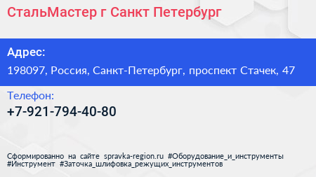 СтальМастер, г. Санкт-Петербург по адресу 198097, Россия, Санкт-Петербург, проспект Стачек, 47 в дальнейшем Организация, размещена в следующих категориях: