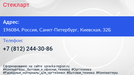 Стекларт по адресу 196084, Россия, Санкт-Петербург, Киевская, 32Б в дальнейшем Организация, размещена в следующих категориях:
