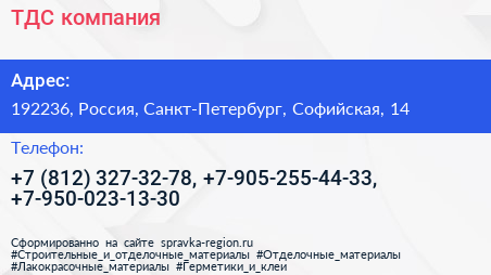 ТДС, компания по адресу 192236, Россия, Санкт-Петербург, Софийская, 14 в дальнейшем Организация, размещена в следующих категориях: