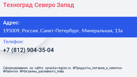 Техноград Северо-Запад по адресу 195009, Россия, Санкт-Петербург, Минеральная, 13а в дальнейшем Организация, размещена в следующих категориях: