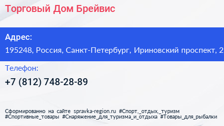 Торговый Дом Брейвис по адресу 195248, Россия, Санкт-Петербург, Ириновский проспект, 2 в дальнейшем Организация, размещена в следующих категориях: