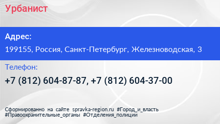 Урбанист по адресу 199155, Россия, Санкт-Петербург, Железноводская, 3 в дальнейшем Организация, размещена в следующих категориях: