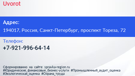 Uvorot по адресу 194017, Россия, Санкт-Петербург, проспект Тореза, 72 в дальнейшем Организация, размещена в следующих категориях: