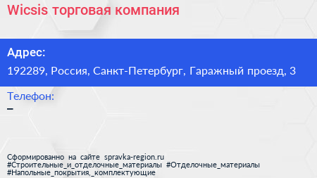 Wicsis, торговая компания по адресу 192289, Россия, Санкт-Петербург, Гаражный проезд, 3 в дальнейшем Организация, размещена в следующих категориях: