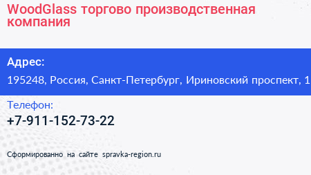 WoodGlass, торгово-производственная компания по адресу 195248, Россия, Санкт-Петербург, Ириновский проспект, 1 в дальнейшем Организация, размещена в следующих категориях:
