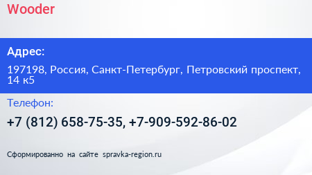 Wooder по адресу 197198, Россия, Санкт-Петербург, Петровский проспект, 14 к5 в дальнейшем Организация, размещена в следующих категориях: