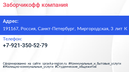 Заборчикофф, компания по адресу 191167, Россия, Санкт-Петербург, Миргородская, 3 лит К в дальнейшем Организация, размещена в следующих категориях:
