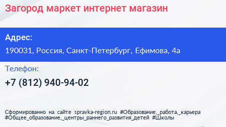 Загород маркет, интернет магазин по адресу 190031, Россия, Санкт-Петербург, Ефимова, 4а в дальнейшем Организация, размещена в следующих категориях: