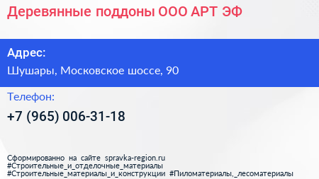 Деревянные поддоны ООО «АРТ ЭФ» по адресу Шушары, Московское шоссе, 90 в дальнейшем Организация, размещена в следующих категориях: