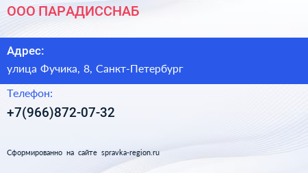 ООО «ПАРАДИССНАБ» по адресу улица Фучика, 8, Санкт-Петербург в дальнейшем Организация, размещена в следующих категориях: