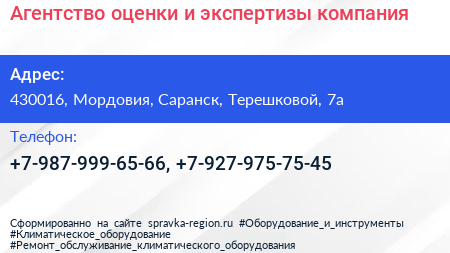 Агентство оценки и экспертизы, компания по адресу 430016, Мордовия, Саранск, Терешковой, 7а в дальнейшем Организация, размещена в следующих категориях: