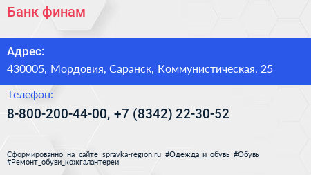 Банк финам по адресу 430005, Мордовия, Саранск, Коммунистическая, 25 в дальнейшем Организация, размещена в следующих категориях: