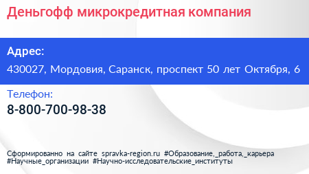 Деньгофф, микрокредитная компания по адресу 430027, Мордовия, Саранск, проспект 50 лет Октября, 6 в дальнейшем Организация, размещена в следующих категориях: