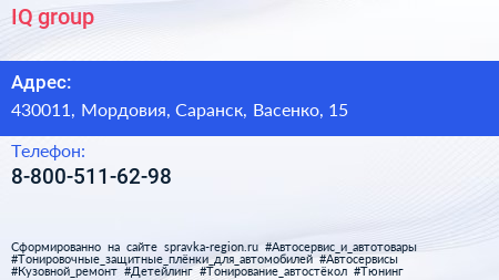 IQ group по адресу 430011, Мордовия, Саранск, Васенко, 15 в дальнейшем Организация, размещена в следующих категориях: