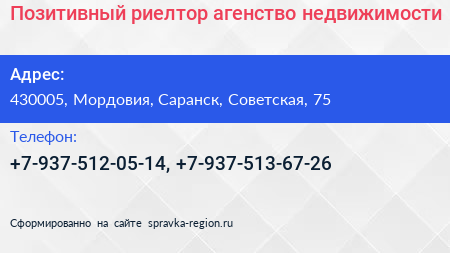 Позитивный риелтор, агенство недвижимости по адресу 430005, Мордовия, Саранск, Советская, 75 в дальнейшем Организация, размещена в следующих категориях: