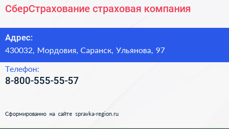 СберСтрахование, страховая компания по адресу 430032, Мордовия, Саранск, Ульянова, 97 в дальнейшем Организация, размещена в следующих категориях: