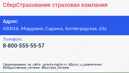 СберСтрахование, страховая компания по адресу 430016, Мордовия, Саранск, Ботевградская, 63а в дальнейшем Организация, размещена в следующих категориях: