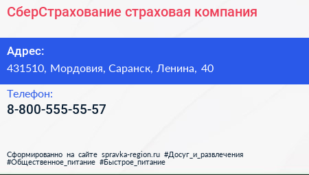 СберСтрахование, страховая компания по адресу 431510, Мордовия, Саранск, Ленина, 40 в дальнейшем Организация, размещена в следующих категориях: