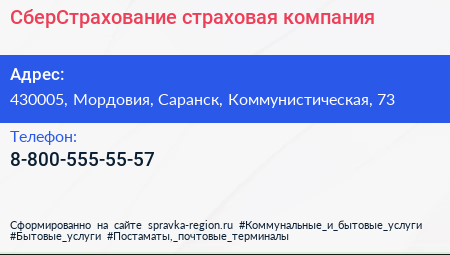 СберСтрахование, страховая компания по адресу 430005, Мордовия, Саранск, Коммунистическая, 73 в дальнейшем Организация, размещена в следующих категориях: