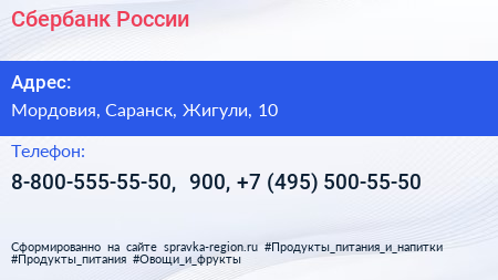 Сбербанк России по адресу Мордовия, Саранск, Жигули, 10 в дальнейшем Организация, размещена в следующих категориях: