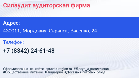 Силаудит, аудиторская фирма по адресу 430011, Мордовия, Саранск, Васенко, 24 в дальнейшем Организация, размещена в следующих категориях: