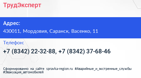ТрудЭксперт по адресу 430011, Мордовия, Саранск, Васенко, 11 в дальнейшем Организация, размещена в следующих категориях: