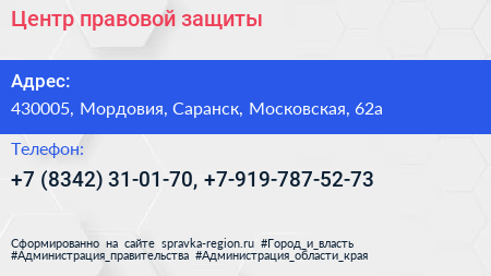 Центр правовой защиты по адресу 430005, Мордовия, Саранск, Московская, 62а в дальнейшем Организация, размещена в следующих категориях: