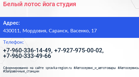 Белый лотос, йога-студия по адресу 430011, Мордовия, Саранск, Васенко, 17 в дальнейшем Организация, размещена в следующих категориях: