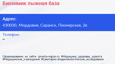 Биохимик, лыжная база по адресу 430030, Мордовия, Саранск, Пионерская, 2в в дальнейшем Организация, размещена в следующих категориях:
