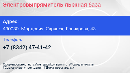 Электровыпрямитель, лыжная база по адресу 430030, Мордовия, Саранск, Гончарова, 43 в дальнейшем Организация, размещена в следующих категориях: