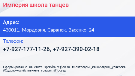 Империя, школа танцев по адресу 430011, Мордовия, Саранск, Васенко, 24 в дальнейшем Организация, размещена в следующих категориях: