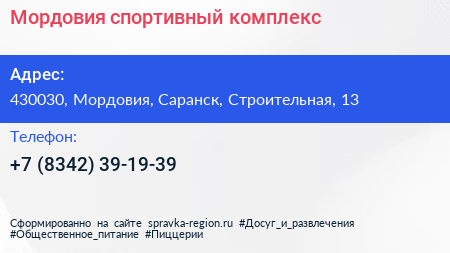 Мордовия, спортивный комплекс по адресу 430030, Мордовия, Саранск, Строительная, 13 в дальнейшем Организация, размещена в следующих категориях: